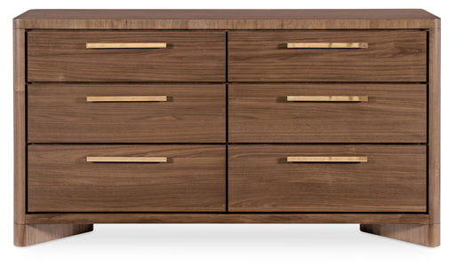 The Eleana Dresser exudes timeless sophistication with its Light Caramel walnut veneer finish and plated Sunlit Bronze hardware. Designed with six ...