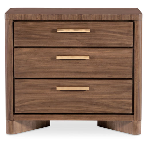 Designed for convenience and style, the Eleana Three Drawer Nightstand features Light Caramel walnut veneers, plated bronze hardware, and rounded c...