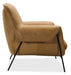 This casual couture chair will become a functional and fashionable focal point in just the right spot. The combination of a sleek and slouchy leather cover with baseball stitching and a slender metal frame makes this a special piece.