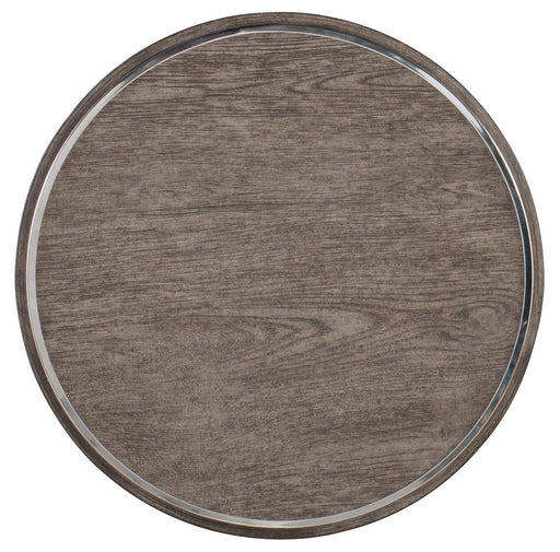 Warm up your modern style with the Storia Round End Table combining wire-brushed, greige-colored Oak Veneers with stainless steel accents in a comp...