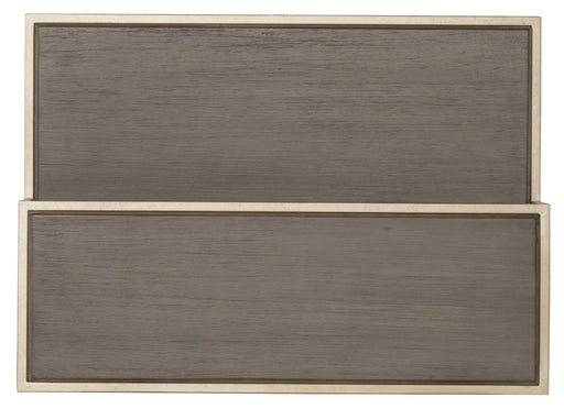 The delicately-scaled Elixir Leg Nightstand combines metal elements in a champagne silver finish with a soft gray finish applied to lightly sand-bl...
