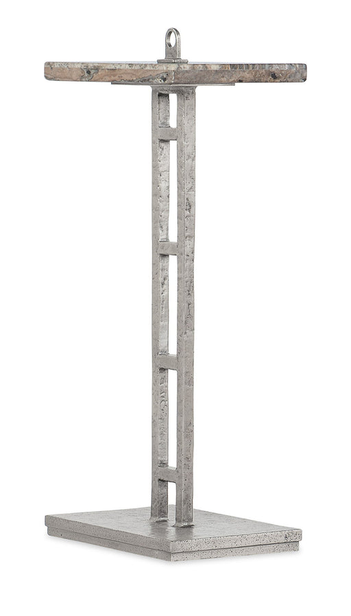 Organic meets industrial in the Chapman Drink Table combining a hand-hammered forged pewter base in a simple geometric design with a honed silver t...