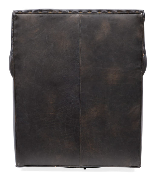 Stunning in a brilliant hand-wiped aniline teal leather, the Conner Swivel Club Chair has a tufted back, flared arms and nailhead trim. CC - Conner...