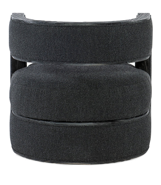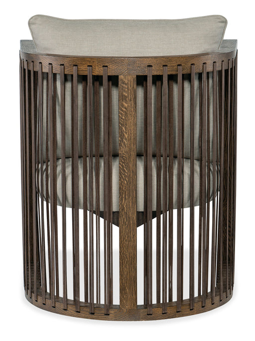 Curvy, chunky and chic, the cool contemporary Calloway Peak Swivel Chair has a fabric seat and back, accented by a loose pillow. The wood base and ...