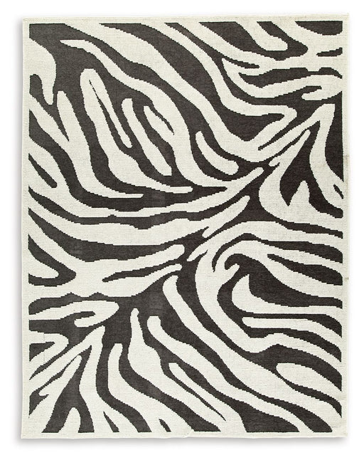 Cover your floor in safari vibes. A bold zebra design on this area rug brings a bit of rugged chic to any room. Machine washable for easy maintenan...