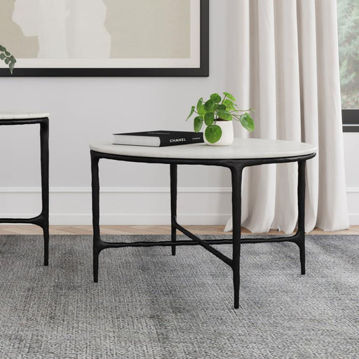 This coffee table set pairs genuine marble tops with elegantly sculpted metal frames, offering both durability and sophistication. The round coffee...
