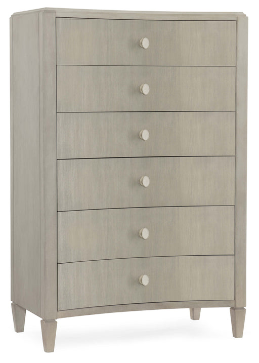 Serene with simplicity, the Elixir Six-Drawer Chest has crisp, clean lines. Character is achieved through textural interest with the gray beige fin...