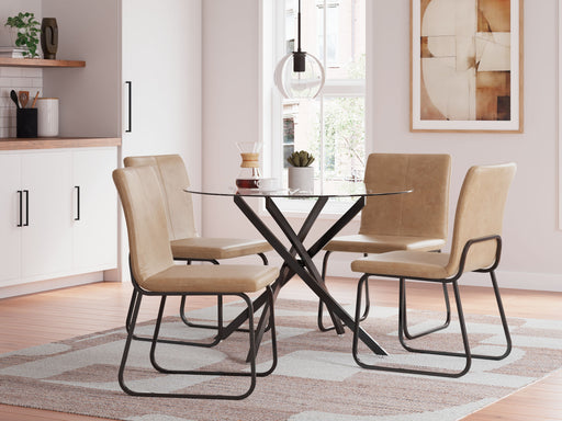 You’ll love the way the Pharwynn dining package masterfully complements the mod vibe of your space. Its stylish metal frames in a sleek gunmetal ad...