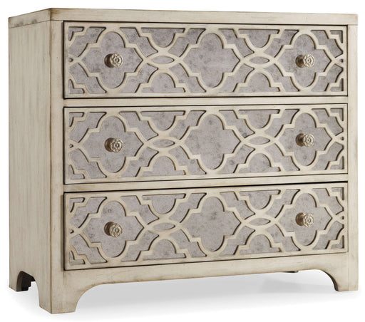 Timeless and romantic, this elegant chest is purely pretty with its fretwork front combining a creamy Pearl Essence finish with Antique Mirror and ...
