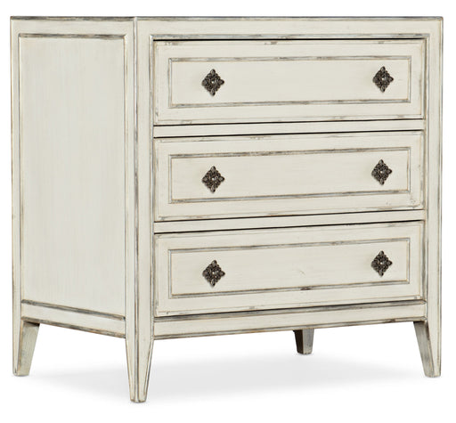 Just add candlelight. With clean lines and a creamy white finish accented with champagne and silver tipping, the Anastasie nightstand is refined el...