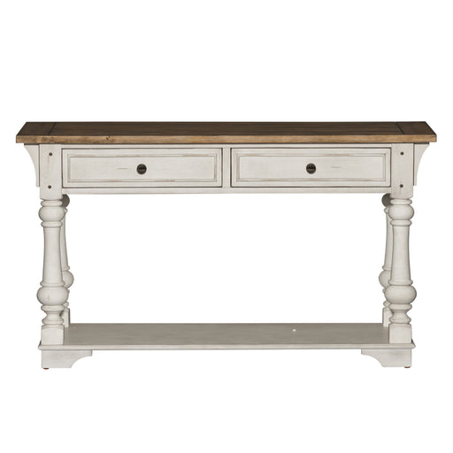 Elevate your space with the Morgan Creek sofa table. Crafted of poplar solids with pine and birch veneers, this piece features an antique white fin...