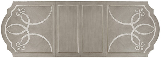 Make every dining gathering a luxe experience with this opulent dining table featuring exquisite scrolled inlays on the top and a mirrored apron. F...