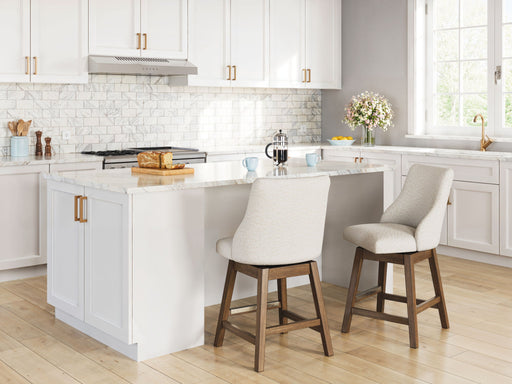 This counter height swivel bar stool sits comfortably at the intersection of modern lodge and farmhouse aesthetics. Your warm and welcoming disposi...