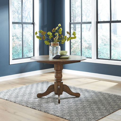 This Carolina Crossing Pedestal Table is distressed, yet current. Consisting of an antique finish with heavy distressing, this table design transla...