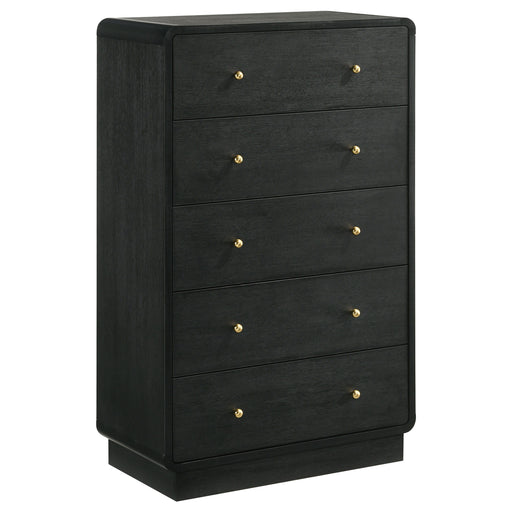 Create a dedicated space for clothing and accessory storage with this modern five-drawer chest. Its sophisticated presentation is complemented with...