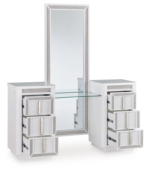 Transform your bedroom with this chic vanity and mirror. Its modern design and glamorous details create a sophisticated retreat. The built-in LED l...