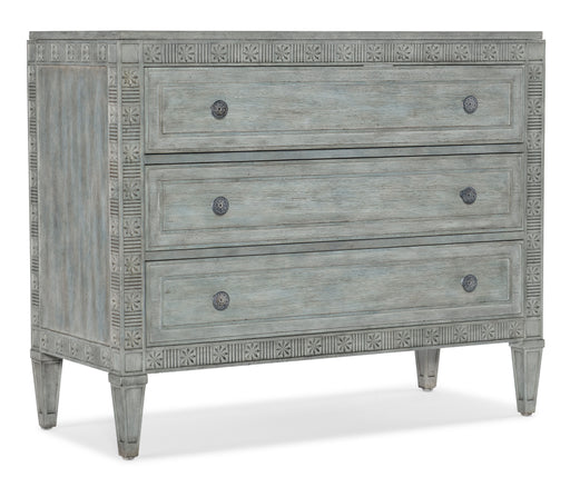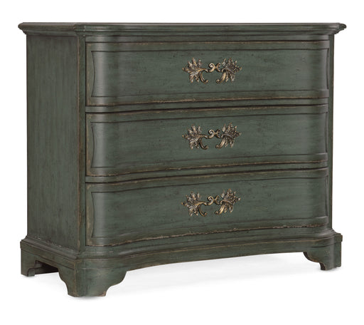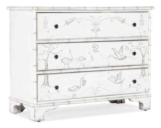 Majestic, graceful and distinctive, the Charleston Three-Drawer Accent Chest has a serpentine-shaped front, handpainted accents on the shaped botto...