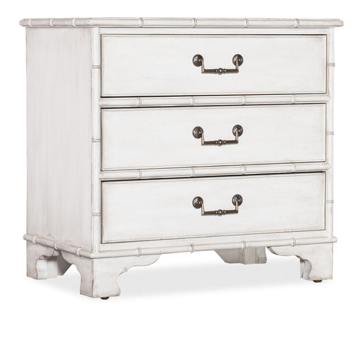 The tropical craftsmanship and botanical carving of the West Indies meets southern charm with the Charleston Three-Drawer Nightstand. Crafted of Ch...