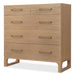 The Banyon Bay Dresser is a functional and stylish addition to your bedroom. Crafted from solids and oak veneers, it showcases a finish enhanced by a multi-step process with wire-brushing and cerusing for added texture. The stainless steel bar hardware in a soft finish adds a modern touch. Featuring drawers, including a jewelry tray and cedar-lined bottom drawer, this dresser offers ample storage space with a refined look. Perfect for a contemporary bedroom setting, it blends geometric design with natural materials for a cohesive and casual look.