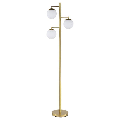A trio of milky white globes sprout from the center of a charming mid-century modern three-light floor lamp. Delivering a warm, diffused glow in yo...