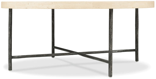 This round cocktail table pairs a textured metal base with an X-stretcher and a stone top for a look that’s both industrial and elegant. The stone ...