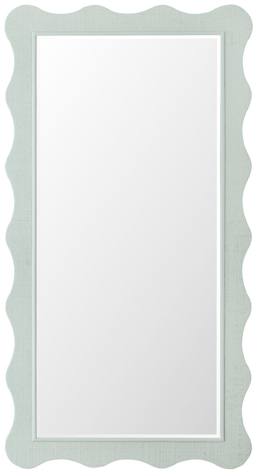 Elevate your entryway or bedroom with the Waverly Leaner Mirror, featuring a scalloped silhouette, beveled glass, and a unique blue-green painted r...