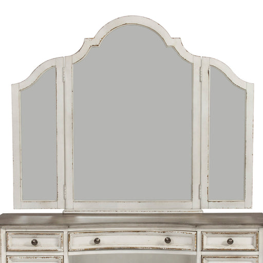 Accent your vanity with this tri-fold mirror. Use the tri-fold mirrors to view every angle, guaranteeing that you'll be happy with the way you look...