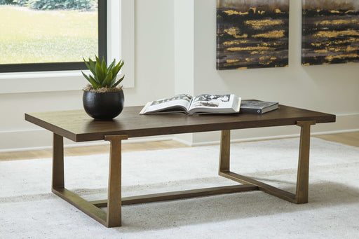 Chic and sleek, this coffee table satisfies your taste for contemporary design. Its warm brown top is neutral and refined, while the antiqued goldt...