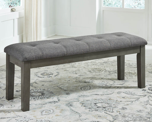 Cool and on-trend. This dining bench sports a two-tone gray look for a contemporary-yet-casual feel. The cushioned foam seat in a gray textural fab...