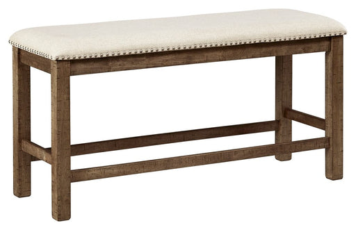 This counter height upholstered bench might be simple at first sight, but a closer look reveals beauty in the details. With a distressed nutmeg fin...