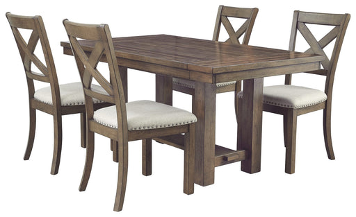 You love a clean and contemporary look—so long as it’s warm and inviting. With that in mind, the Rokane dining table set serves your sense of style...