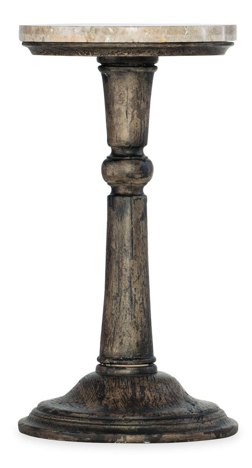 A perfect perch for refreshment at the end of a tiring day, the Rabbs Prairie Martini Table contrasts a shaped base finished in a dark Flemish pain...