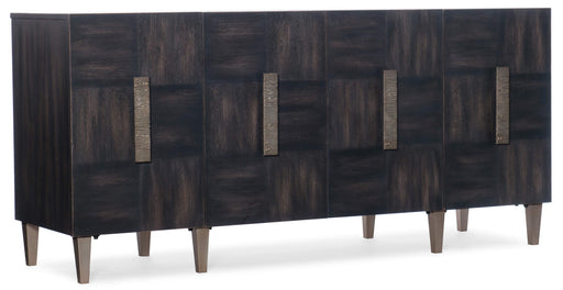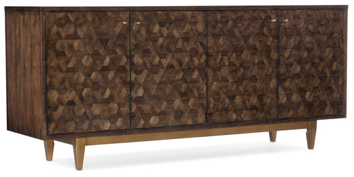 Warm and welcoming and crafted of Walnut Veneers with a timeless marquetry pattern, the Alpine Four-Door Credenza has 4 doors with one adjustable s...