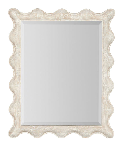 ring the relaxed aura of the outside in with the lovely scalloped-edge Bora Landscape Mirror in the refreshing Surf finish, an airy whitewashed oak...