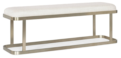Combining a cozy upholstered seat with a sleek metal base in a champagne finish, the River Branch Bench is chic, modern and inviting. The seat is u...