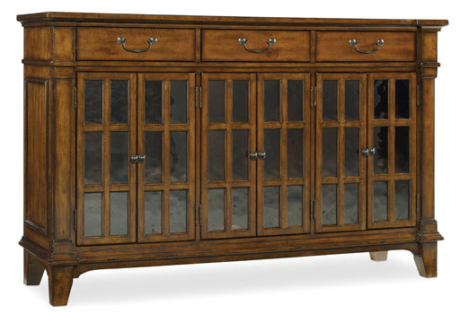In a warm, chestnut-colored rustic finish over figured Alder Veneers accented by classic knob and handle hardware in an aged copper finish, the Tyn...