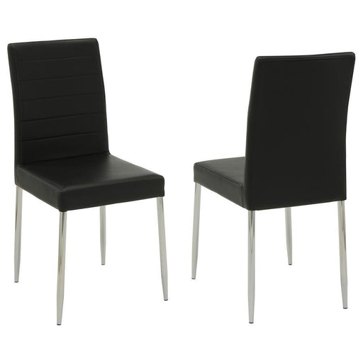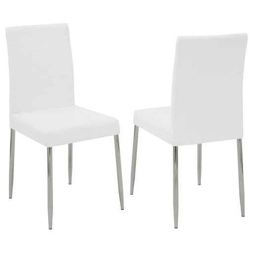 Clean lines enhance the modern aura of this everyday dining side chair. Beautifully appointed, this modern chair features an armless profile with a...