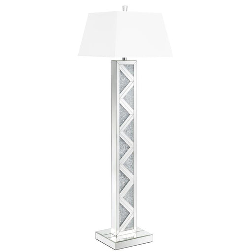 Bring bold glamour to your interior with this contemporary floor lamp, featuring a mirrored base adorned with sparkling crystal-like accents in a s...
