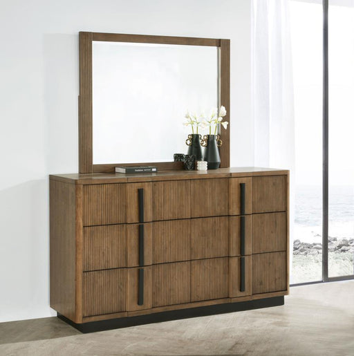 Amplify the modern artistry of your bedroom with a stylish six-drawer dresser and mirror combination. Delivering chic flair with vertical fluting, ...