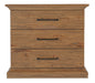 Exuding the heritage of post and beam construction and true craftsmanship, the Big Sky Nightstand has a straightforward silhouette design crafted of Pecky Hickory Veneers with a solid-wood edged top. Finished in the warm and rustic Vintage Natural, the piece is accented by dark brushed bronze bar pulls. With three drawers, the top drawer has a removable felt liner. There’s a power supply with a cord clip on the back, and the bottom drawer is cedar-lined.