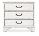 Inspired by the tropical craftsmanship of the West Indies and the cane accents of the classic British and Dutch Colonial design periods, the Charleston Nightstand has bamboo-motif trim and three drawers with self-closing drawer guides. The wood nightstand is finished in White Heron, a softer interpretation of the classic Southern limestone white with a slightly brighter sheen, delivering an heirloom-quality finish. The drawer interiors are painted gray, and the exteriors have antique pewter-colored decorative bail pulls.