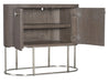 Architectural and timeless with a luxe mixture of materials, the Modern Mood Oval Nightstand is a statement piece. The shaped metal base gives the nightstand a floating appearance. Crafted with Quartered Oak Veneers, the piece is finished in a serene, crystal-like Diamond color. The two doors have soft-close hinges and magnetic door catches, and there’s one adjustable shelf behind. Finished on all sides and features wire management on the back.