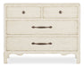 In a classic, charming design with a nostalgic flair, the Americana Bachelor Chest is reminiscent of a simpler, more genteel time. It has a scalloped shaped base and is finished in a deep, dark Molasses finish on Cathedral Oak Veneers. The four self-closing drawers have the warm Honey interior finish. Metal alloy bar and knob pulls are in an antique bronze finish.
