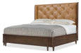 The Archives Leather Bed exudes luxury with a combination of figured walnut veneers and tufted leather in a semi-aniline top grain. The finish enhances the elegance of this shelter-style bed, which includes a headboard, footboard, and rails. The eight tapered legs and winged design add a distinctive, sophisticated flair to your bedroom.
