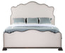 The stunning Charleston Upholstered Bed marries a traditional soul with a hint of cosmopolitan chic. Contrasting the rich heirloom finish on the wood trim, side panels and feet with the Chateau Linen upholstery on the scalloped-edge headboard and footboard, the bed is crafted of Cherry Veneers and fabric.