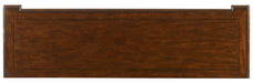 Stately, stylish and striking, the Leesburg Dresser brings a graceful focal point to your room and is loaded with practical function. Featuring 10 drawers, the dresser has a drop-in felt liner in the right drawer, hidden storage in the third drawer on the left, a drop-down top left drawer with wire management and a jewelry tray in the top center drawer, along with cedar-lined bottom drawers. Finished in a rich mahogany finish with elegant cathedral and swirl mahogany veneers with light physical distressing.