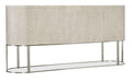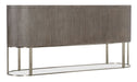 Softly sophisticated with a clean modern profile and luxe mixture of materials, the Modern Mood Server is a stunning statement piece. The case has rounded corners, is finished on all sides and has an oval metal stretcher that goes all the way around. Crafted of Quartered Oak Veneers, the server has tactile wire-brush detailing in a serene Diamond finish. The metal on the hardware and base is in a brushed warm pewter finish, and the bar pulls are wrapped in leather. The two wood doors have soft-close hinges and magnetic catches. There’s one adjustable wood shelf behind each door, and the two drawers are self-closing and feature a drop-in silver tray liner in the top drawer.