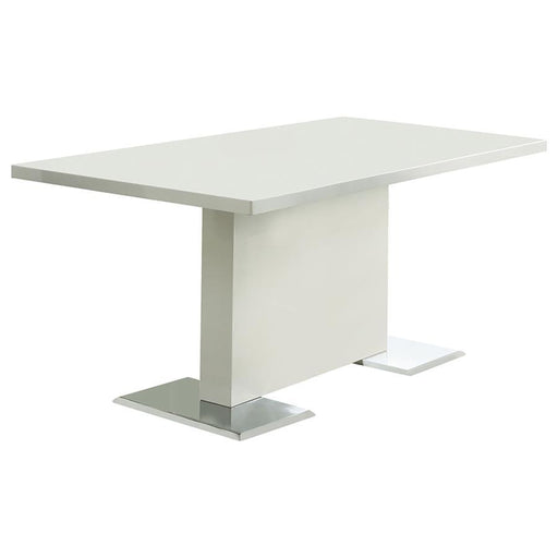 Sleek and sophisticated, this modern dining table makes a bold statement with its clean lines and minimalist design. The white high-gloss finish en...