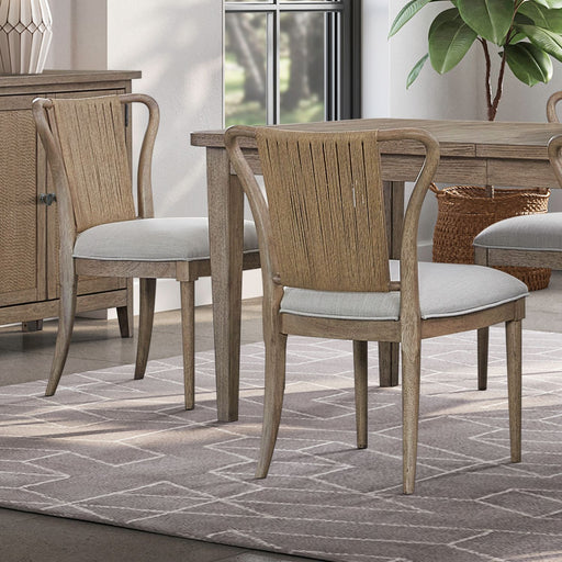 The Driftwood Upholstered Arm Chair combines soft fabric seating with warm rustic tones. The open back and arms create a welcoming design, perfect ...