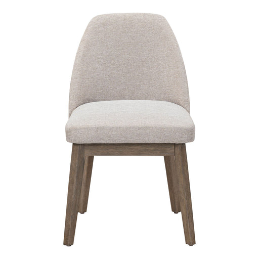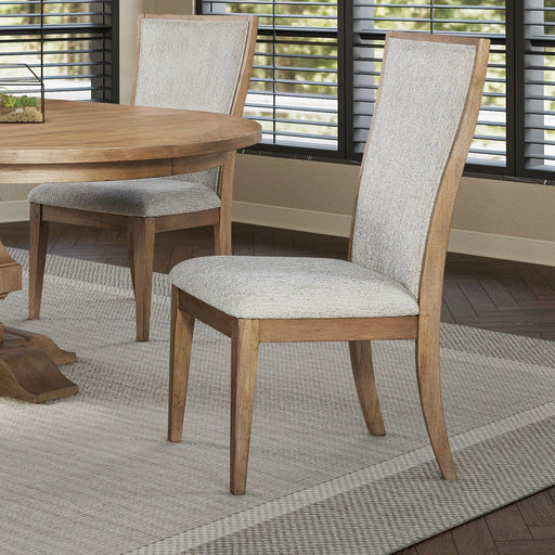 The Driftwood Upholstered Side Chair offers casual elegance with its plush bisque fabric seat and back and sturdy oak legs with stretcher support. ...